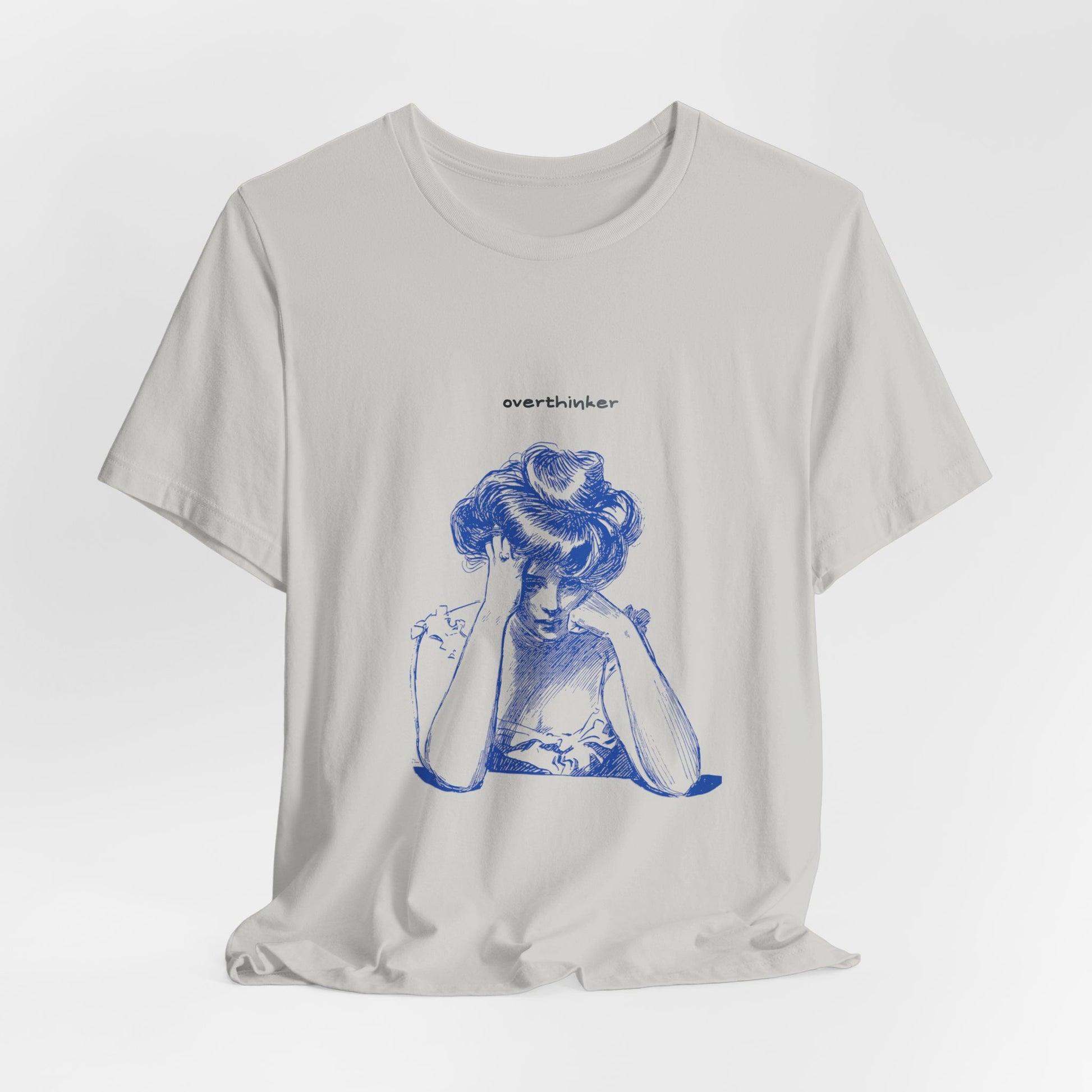 This classic unisex jersey short-sleeve tee fits like a well-loved favorite. Soft cotton and quality print make for a great option to say "Overthinker" with a Tee!
