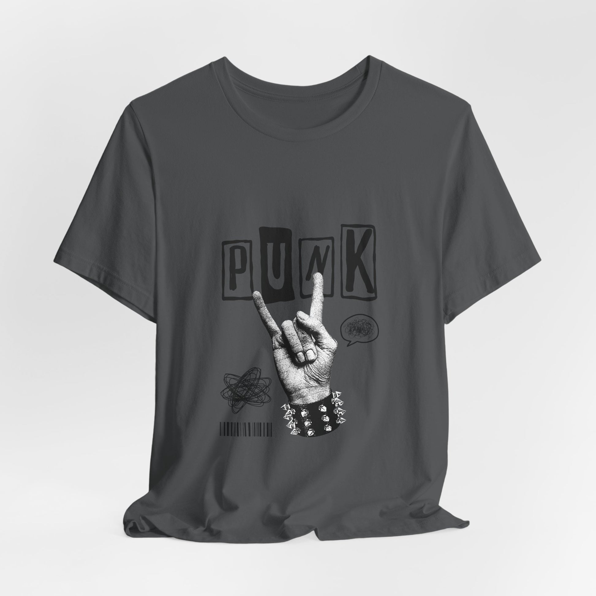 This classic unisex jersey short-sleeve tee fits like a well-loved favorite. Soft cotton and quality print make for a great option to say "Punk" with a Tee!